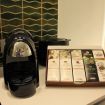 Acqua di benvenuto e una selezione di tè e caffè sono offerti.